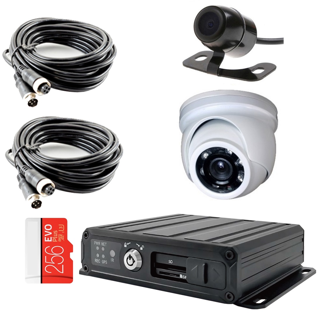 Комплект видеонаблюдения на транспорт с 2 SD картами на 2 камеры