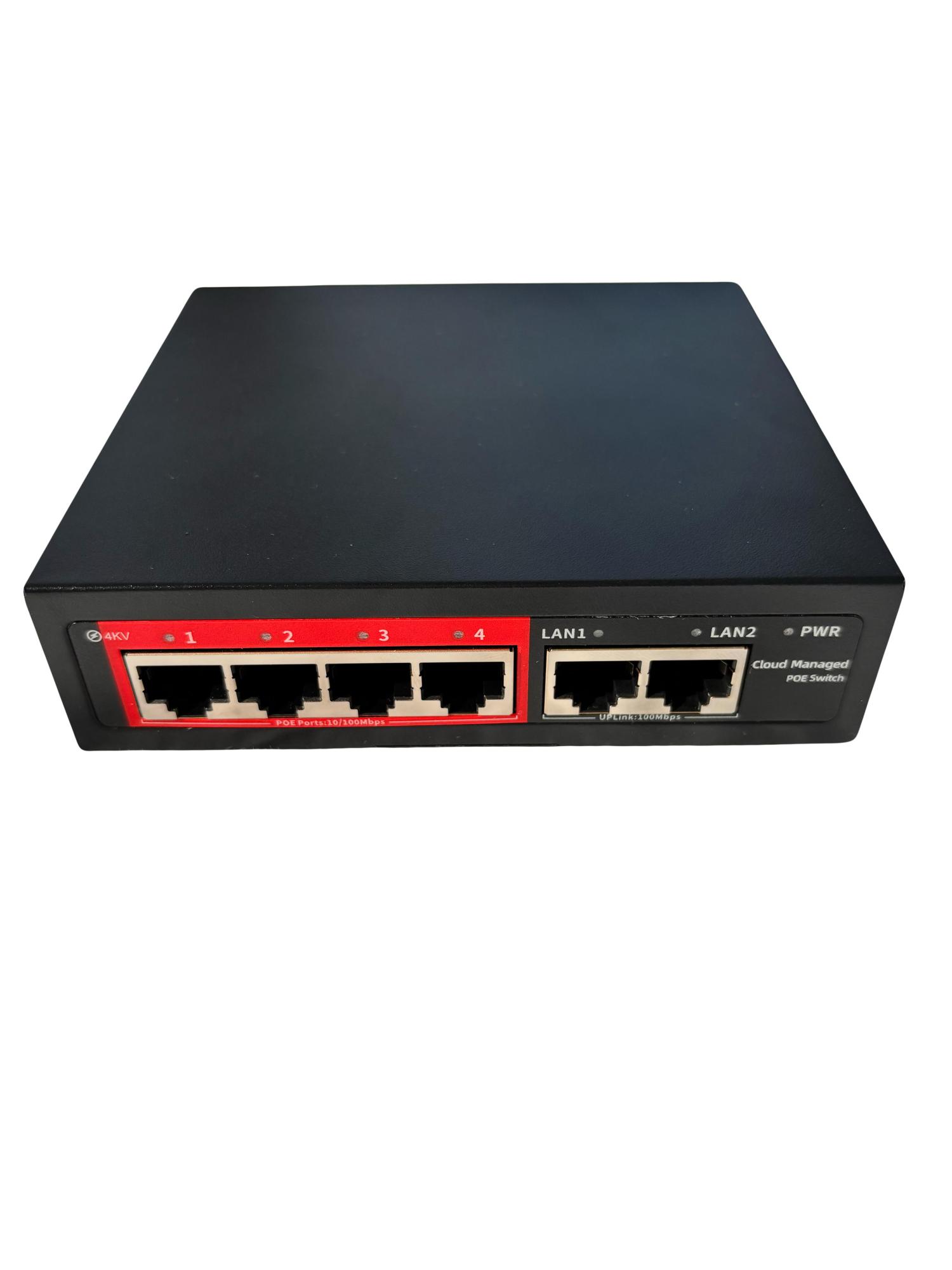 Полное облачное управление гигабитный коммутатор PS204D 4 канала (4 портов PoE 100мбит/с + 2 порта uplink 1000мбит/c + SFP 1000мбит/c)