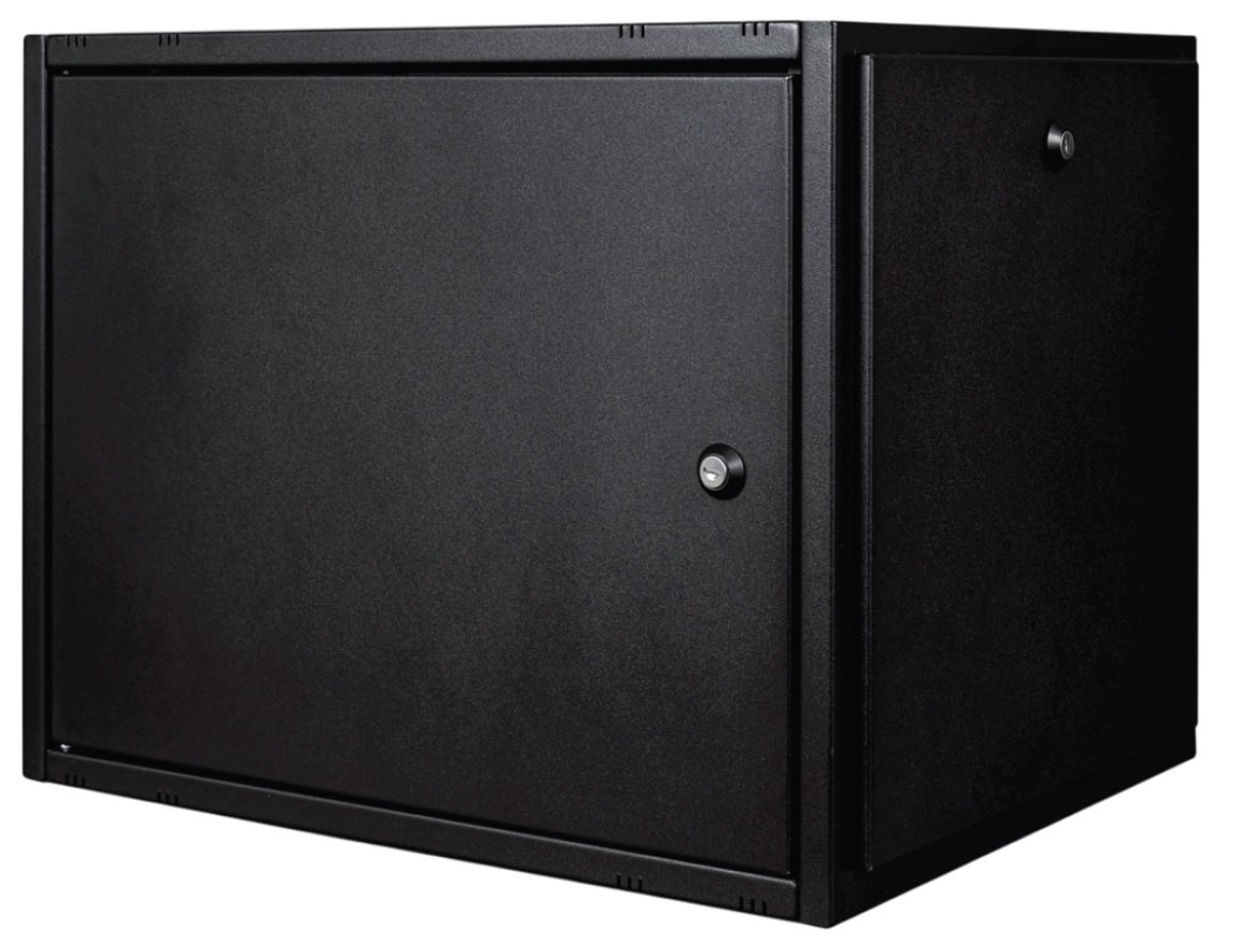 Настенный телекоммуникационный шкаф стандарта 19 дюймов, высотой 9U, оснащен металлической дверью и обладает полезной глубиной 434 мм.